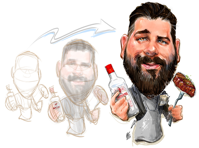 We start with a sketch of the people or subject matter and send you a draft of the caricature illustration for approval and feedback.