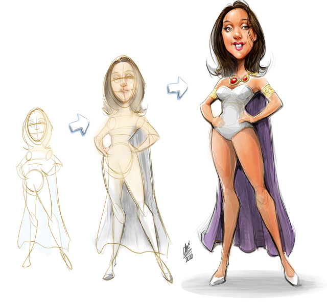 We start with a sketch of the people or subject matter and send you a draft of the caricature illustration for approval and feedback.