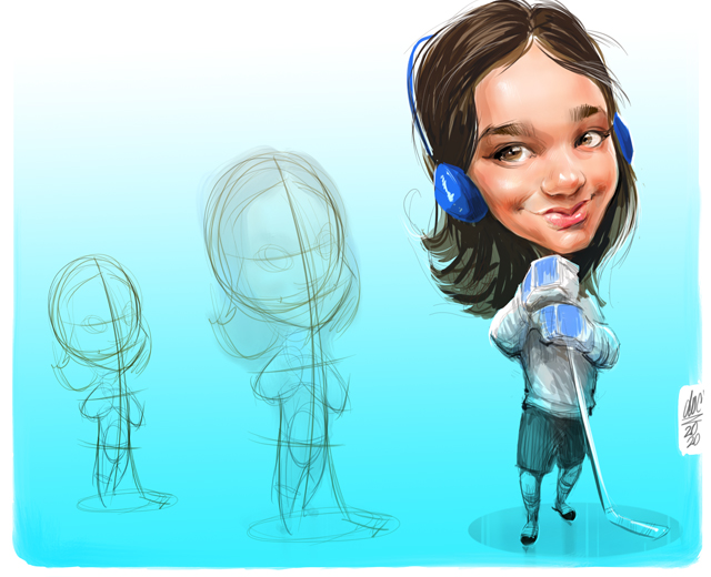 We start with a sketch of the people or subject matter and send you a draft of the caricature illustration for approval and feedback.