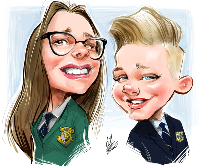 Digital caricatures are a versatile and can be used as custom framed art, t-shirts, coffee cups, social media avatars and marketing.