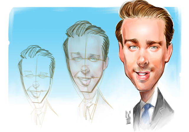 We start with a sketch of the people or subject matter and send you a draft of the caricature illustration for approval and feedback.